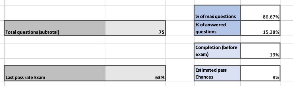 - Last pass rate Exam: here you have to enter the pass rate (if you know it) or the one you think it is appropriate for you.